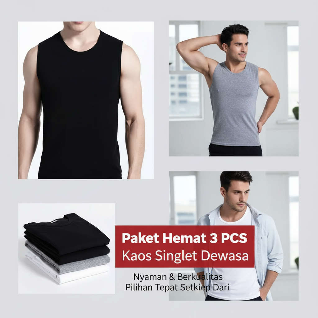 Dapatkan tiga potong singlet berkualitas tinggi dengan harga spesial untuk melengkapi kenyamanan gaya harian Anda.